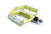 leichtes Flat-Pedal, CNC-veredelter Aluminiumkörper und CrMo Achse, angefaste Kanten für erhöhte Bodenfreiheit in Kurven, große Standfläche, extrem flache Bauweise, neun austauschbare und einstellbare Pins pro Seite, gedichtetes Patronengleitlager und zwei gedichtete Industrielager