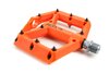 leichtes Flat-Pedal, Nylon-verstärkter-Kunststoff-Körper und CrMo Achse, angefaste Kanten für erhöhte Bodenfreiheit in Kurven, große Standfläche, extrem flache Bauweise, neun austauschbare und einstellbare Pins pro Seite, gedichtete Industrielager