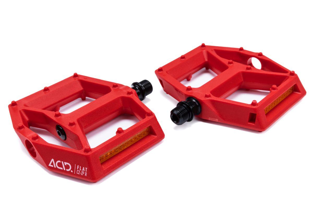 Hier im Bikepark kenne ich jeden Anlieger, jeden Sprung und jede Wurzel. Adrenalin pur! Auf meine ACID FLAT Pedale kann ich mich dabei voll verlassen. Mit ihren haltbaren Pins und der großen Standfläche fühle ich mich auch im gröbsten Wurzelteppich sicher mit dem Bike verbunden und kann mich doch sofort davon lösen, wenn der Trick mal nicht so klappt wie geplant.