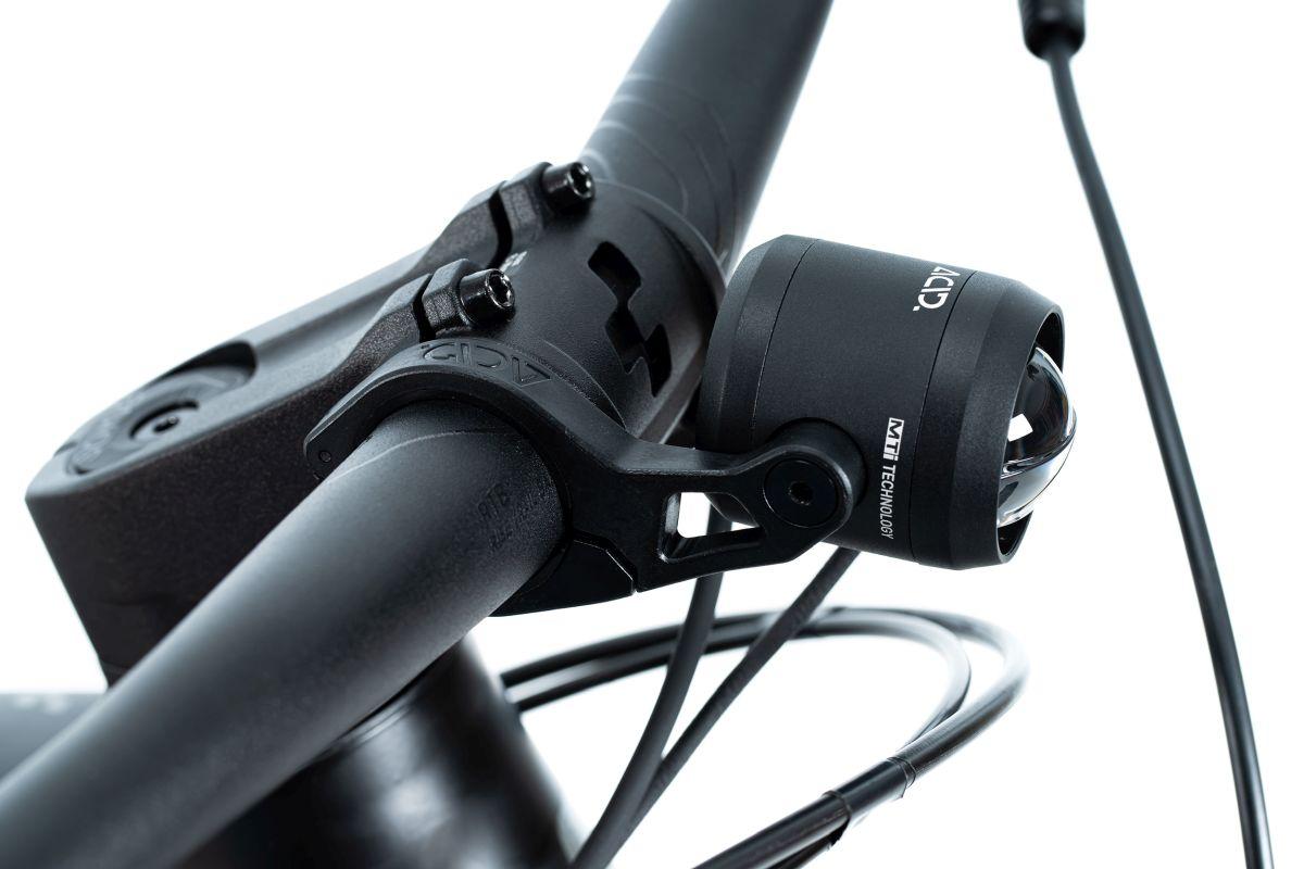 Spot an für unser ACID E-Bike Frontlicht PRO-E 110! Für herausragende Ausleuchtung sowohl im Straßenverkehr als auch im Gelände sorgt die Linse mit MTi Technology und lässt das leistungsstarke Licht mit 110 Lux und 550 Lumen in die Dunkelheit strahlen. Mit dem 130 cm langen Lichtkabel mit BES 2 Stecker für BOSCH Motoren ist der Anschluss am E-Bike ein absolutes Kinderspiel. Inklusive Lenkerhalter für 31,8 und 35 mm Durchmesser, GoPro-kompatiblem Universaladapter und Gabelhalter für flexible Montage.