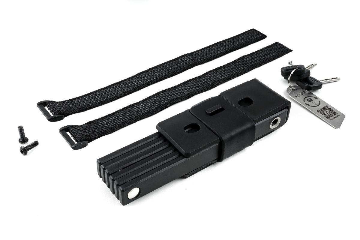 Das hochsichere Faltschloss RIGID 80 PURE ist aus speziell gehärtetem rostfreien Hochleistungsstahl gefertigt und genügt durch die ART1 Zertifizierung allerhöchsten Ansprüchen. Ein solider, gefederter Bolzen sorgt sowohl für eine sehr einfache Handhabung als auch für sicheres Verschließen. Durch das schlichte und schlanke Design ist das gewichtsoptimierte 80cm lange Faltschloss nicht nur handgerecht und griffig, sondern passt nahezu an jedes Fahrrad. Der flache Halter mit seitlicher Öffnung lässt sich mühelos variabel verschrauben oder mit rutschfesten Klettverschlüssen befestigen. Das Schloss hält durch seine besonders hochwertigen Materialien und die präzise Verarbeitung immensen Aufbruchsversuchen und extremer Witterung langfristig stand. Der perfekte Schutz für jede Situation.
