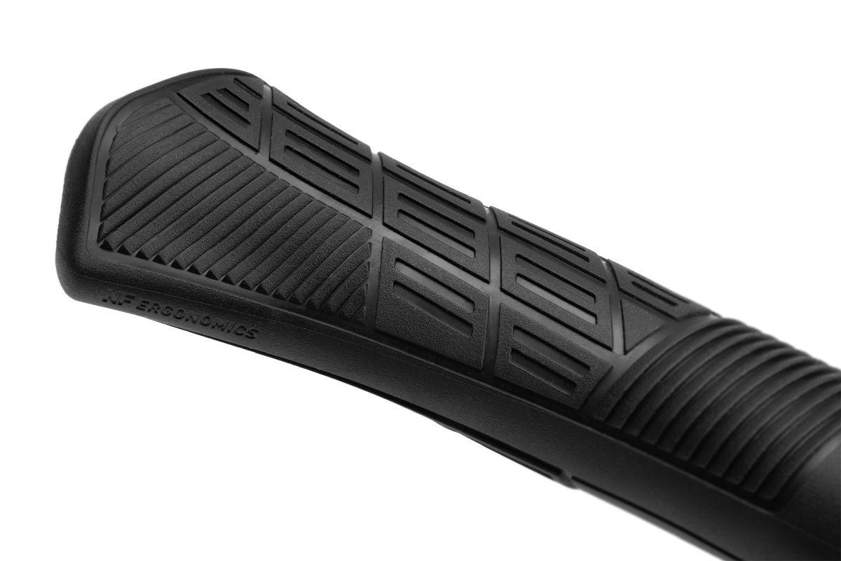 NF Ergonomics Philosophie angewandt auf ein sportliches und unterstützendes Fahrerlebnis, Curved Contour Miniflügel zur Unterstützung des Handgelenks, Mushroom Cushioning Bereiche zum Absorbieren von Vibrationen und Schlägen, Traction Waves auf der Unterseite für einen besseren Halt, Aluminium Innenklemmung, In zwei Größen erhältlich, ACID GILink zur Montage von Zubehör Teilen wie Bar Ends oder Spiegeln