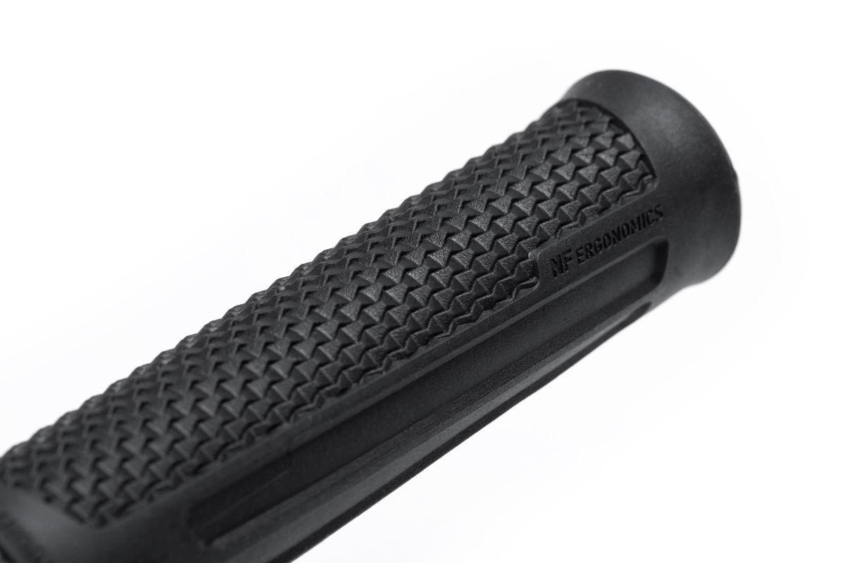 NF Ergonomics Philosophie angewandt auf eine präzise und performanceorientierte Fahrleistung, Relief Zone zur Schonung des Daumenknöchels, Traction Lines auf der Unterseite für einen besseren Halt, Innenklemmung, ACID GILink zur Montage von Zubehör Teilen wie Werkzeugen