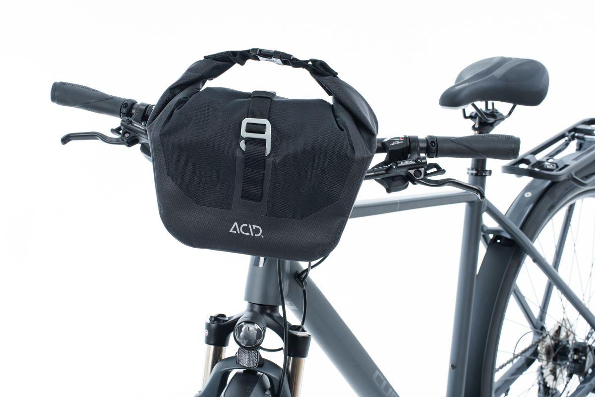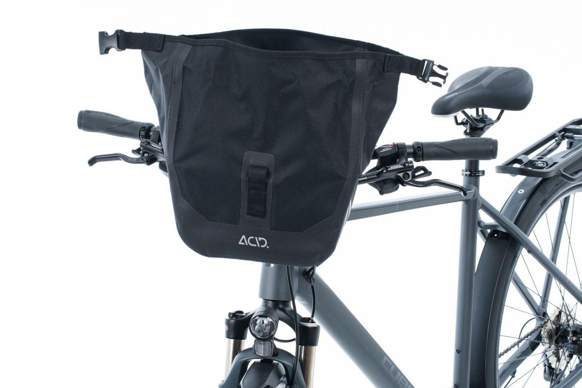 Funktionales, wasserdichtes Front-Travel-Bag mit ACID FILink für eine schnelle und sichere Befestigung. Erfüllt dank Schultertragegurt auch per Pedes seine Dienste!