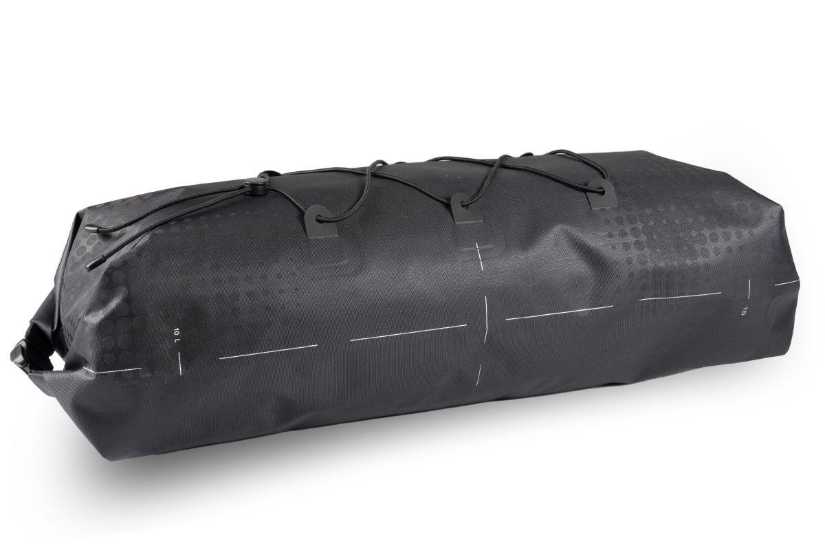 Die neue ACID Lenkertasche PACK PRO 15 – mit erfahrenen Bikepackern entwickelt – ist die größere Version der PACK PRO 9, passt aber in den gleichen Harness. Das zweiteilige System aus Harness und wasserdichter, verschweißter Drybag ist funktionell konzipiert. Dank des flexiblen MOLLE-Systems lässt sich der Harness sicher und wackelfrei an jedem Lenker anbringen. Die robuste, verschweißte Dry Bag wird einfach in den Harness gesteckt, mit zwei Schnellverschlüssen fixiert und kann per Strap auch in der Breite komprimiert werden. Ein weiteres Feature: Der Tascheninhalt lässt sich durch ein integriertes Entlüftungsventil noch weiter komprimieren. Reflektierende Elemente an beiden Teilen erhöhen die Sichtbarkeit im Straßenverkehr. Auch ein Frontlicht lässt sich problemlos anbringen.