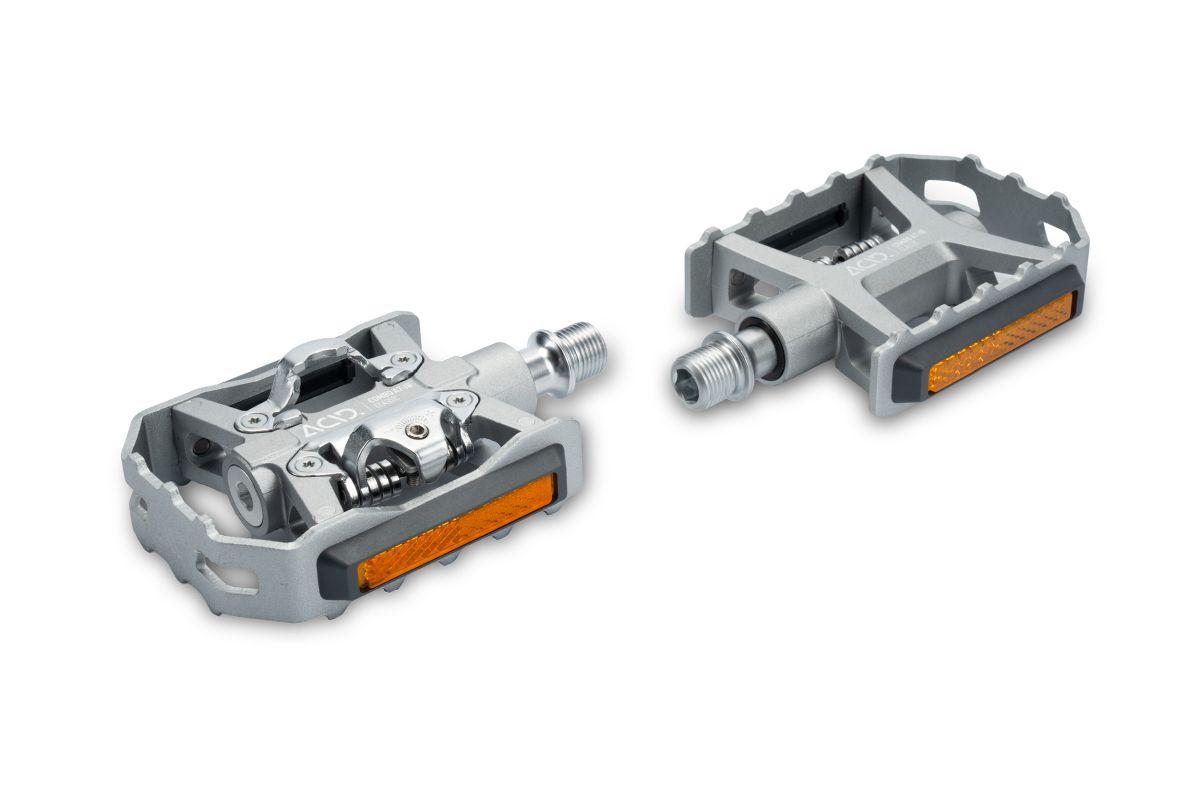 klassisches Combo Pedal für urbanen Einsatz, einseitiges Klick-System aus beschichtetem Stahl, SPD-kompatibel, einstellbare Federhärte, leichter Aluminium Käfig und Körper, sicherer Halt durch im Käfig integrierte Pins, inklusive vier zertifizierter Reflektoren, haltbare, CNC gefräste Cr-Mo Achse, gedichtetes Industrielager inklusive Nadellager, Lieferumfang beinhaltet ein Paar Cleats, geeignet bis zu 150 kg Systemgewicht, E-Bike ready