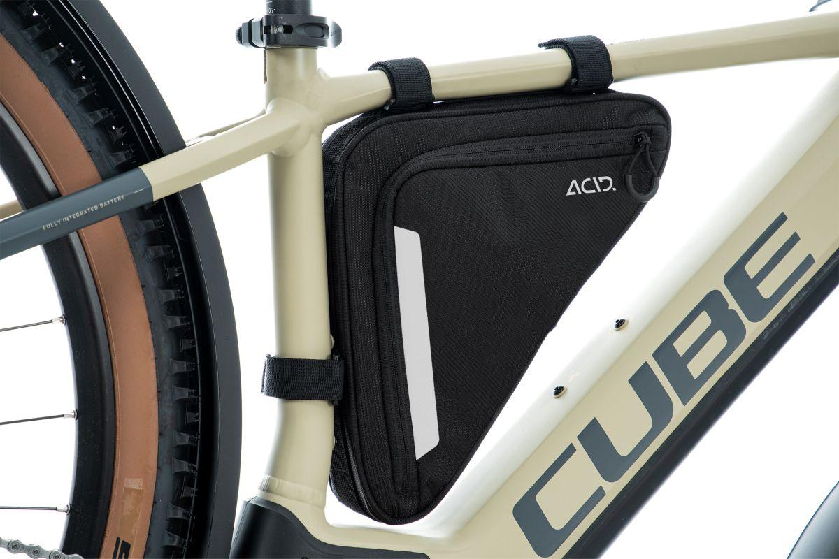 Die ACID Rahmentasche CMPT 2 mit 2 Liter Fassungsvermögen hat alle essenziellen Features, die sie braucht. Das Außenmaterial ist PVC-frei, abriebfest und pflegeleicht. Dank dem umlaufenden Molle-System lässt sie sich mit Straps an verschiedenen Positionen anbringen und passt sich flexibel an den Rahmen an, ohne die Bike-Performance zu beeinträchtigen. Reflektierende Elemente erhöhen die Sichtbarkeit. Im Hauptfach mit Netztasche, Karabinerhaken, Pumpenhalterung und Seitentasche mit separatem Reißverschluss lassen sich die Inhalte übersichtlich und sicher verstauen. Durchdacht ist auch das farbige Innere der Tasche: So kannst du die Tascheninhalte viel besser erkennen als in einem komplett schwarzen Interieur.
