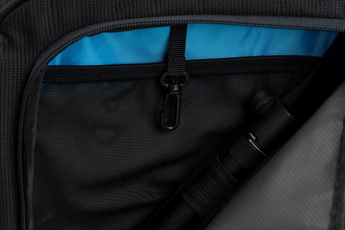 abriebfestes Außenmaterial, PVC-frei, flexible Anbringung durch umlaufendes Molle System, reflektierende Elemente, Hauptfach mit Netztasche und Karabinerhaken, Seitentasche mit separatem Reißverschluss, Pumpenhalterung