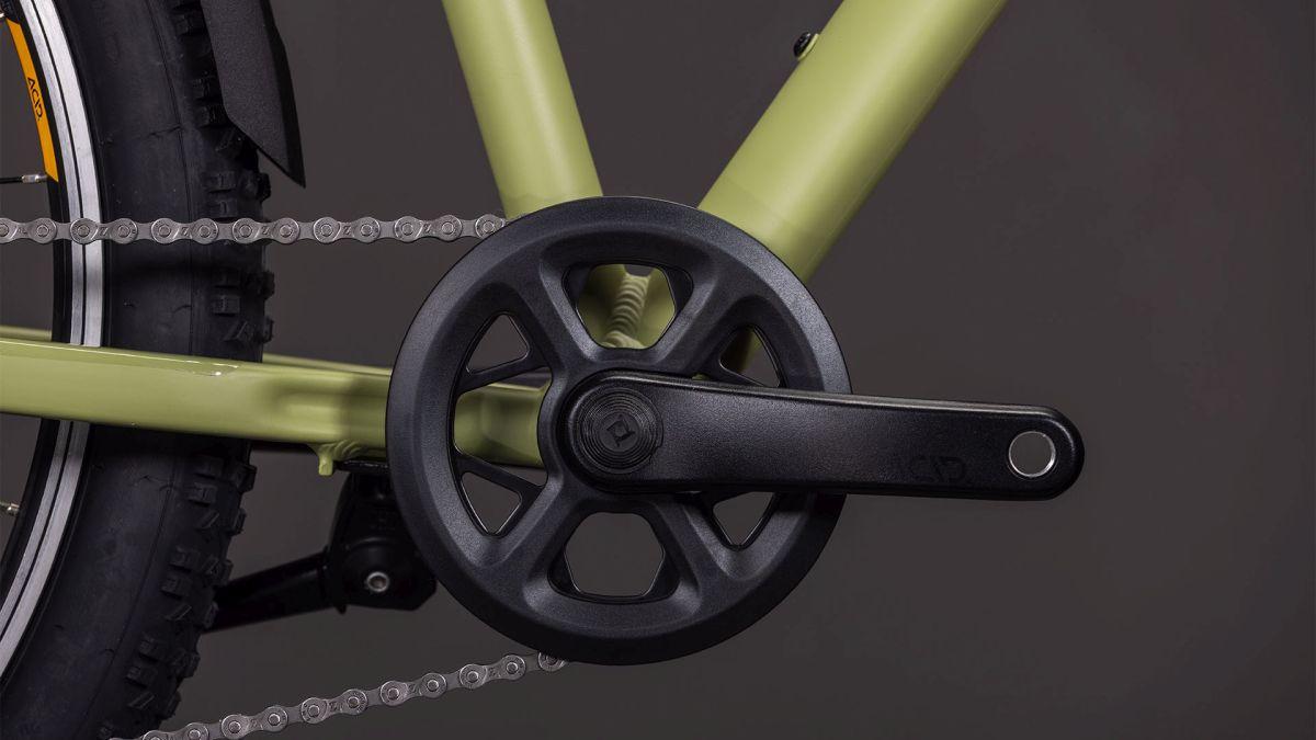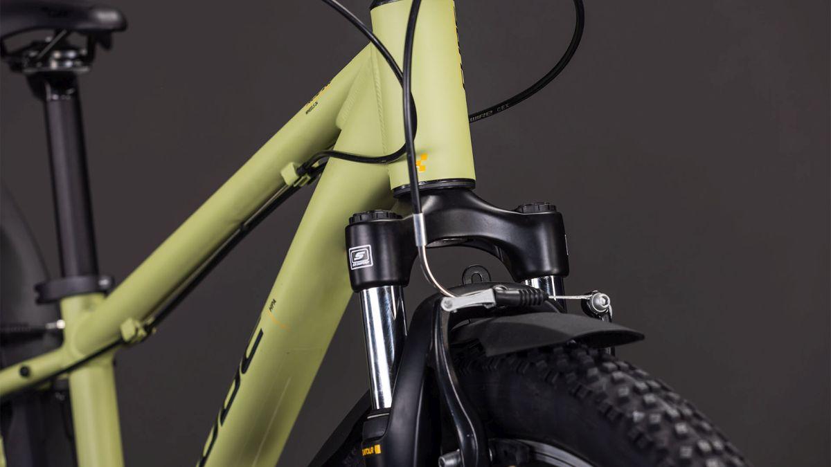 Der Rahmen des Acid 240 FE besteht aus denselben hitzebehandelten 6061er-Aluminiumrohrsätzen wie der unserer Erwachsenen-Mountainbikes und ist demnach genauso robust und stabil. Allerdings haben wir seine Proportionen und das Gewicht auf die Anforderungen von Kindern abgestimmt. Dazu gibt's praktisches Zubehör in Form von Schutzblechen, Lichtanlage und Seitenständer, sodass die Youngsters stets für alle Abenteuer gerüstet sind! Sein Handling verspricht hohen Fahrspaß und zugleich Zuverlässigkeit, wodurch der Radelnachwuchs ganz viel Selbstvertrauen tanken kann. Zudem haben wir ein einfach austauschbares Schaltauge verbaut, damit der eine oder andere Sturz nicht gleich teure Reparaturen nach sich zieht.