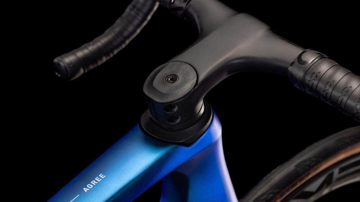 Schnelle Bikes sehen nicht umsonst auch schnell aus. Warum? Weil sich der Fokus auf maximale Aerodynamik in der Entwicklung auch im Look wiederspiegelt. Ein integrierter Lenker und im Inneren verlaufende Leitungen dank Advanced Internal Cable Routing verschaffen dem Agree C:62 den ersten entscheidenden Vorsprung. Ein weiteres Highlight – und im Rennen vielleicht das Zünglein an der Waage – sind die durchdacht geformten Rohrprofile, die wir von unseren wettkampferprobten Rennrad- und Zeitfahrrahmen übernommen haben. Eine ausgeklügelte Carbonkonstruktion und schlanke Sitzstreben sorgen für dauerhaft hohen Fahrkomfort, selbst auf langen Strecken. Apropos lange Strecken: In der optionalen Rahmenbox fahren Energieriegel, Werkzeug oder eine Jacke mit.