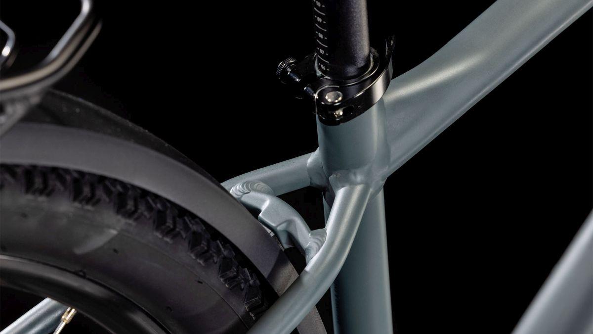 Der Aim Allroad Rahmen setzt in Sachen Vielseitigkeit neue Maßstäbe. Er kommt mit Schutzblechen, Gepäckträger und Lichtanlage daher und ist somit direkt startklar für alles, was von ihm verlangt wird. Außerdem haben wir ihm ein geschraubtes Tretlager gegeben und die Züge ins Innere verlegt, damit sie ihren Job lange machen und einfach gewartet werden können. Die Aufnahme für eine Flat Mount Scheibenbremse ist nahtlos in die Seitenständeraufnahme integriert. Die spezielle Geometrie hat ein niedrigeres Oberrohr für superzuverlässiges Handling und lässt viel Platz für breite, griffige, komfortabel rollende 2.25 Zoll Reifen. Dazu ist unser Size Split System breit aufgestellt – so findest du mit Sicherheit das für dich perfekt passende Aim.