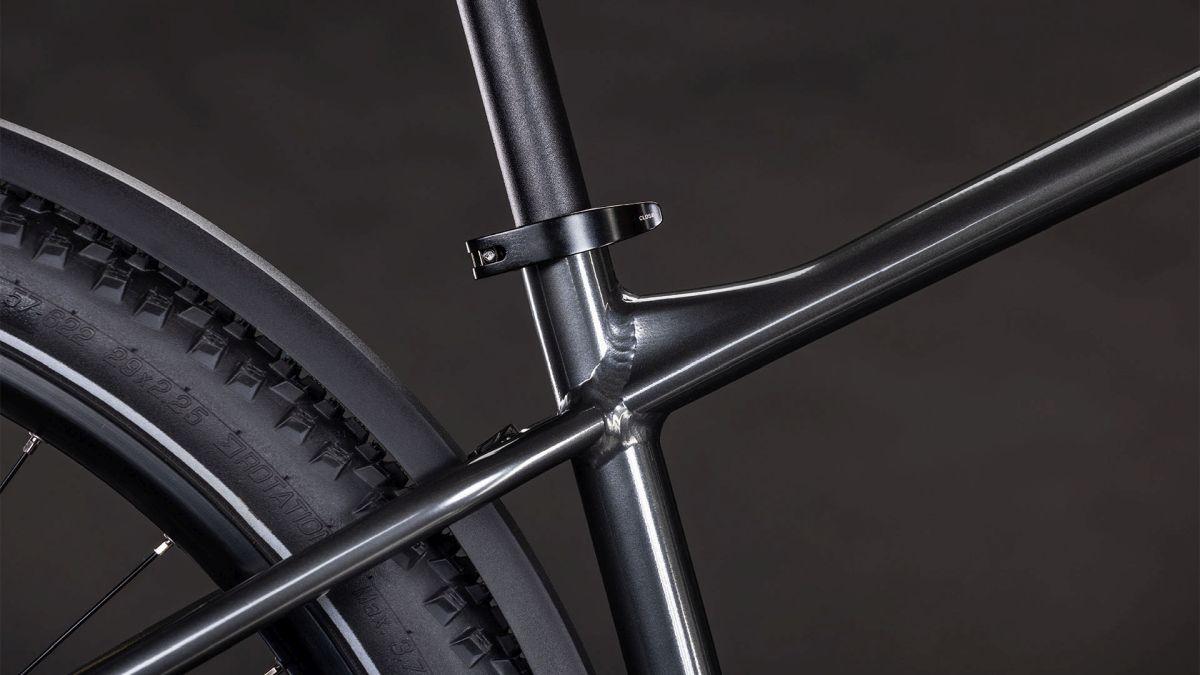 Der Aim FE Rahmen setzt in Sachen Vielseitigkeit neue Maßstäbe: Er kommt mit Schutzblechen, Gepäckträger und Lichtern daher und ist somit direkt startklar für alles, was von ihm verlangt wird. Außerdem haben wir ein geschraubtes Tretlager verbaut und die Züge ins Innere verlegt. On top gibt's eine Aufnahme für Flat Mount Scheibenbremsen, die nahtlos in die Seitenständeraufnahme integriert ist. Die spezielle Geometrie hat ein niedrigeres Oberrohr für superzuverlässiges Handling und lässt genug Platz für breite, griffige, komfortable 2.25 Zoll Reifen. Dazu ist unser Size Split System breit aufgestellt – so finden alle das für sich und ihre Körpergröße perfekt passende Aim FE.
