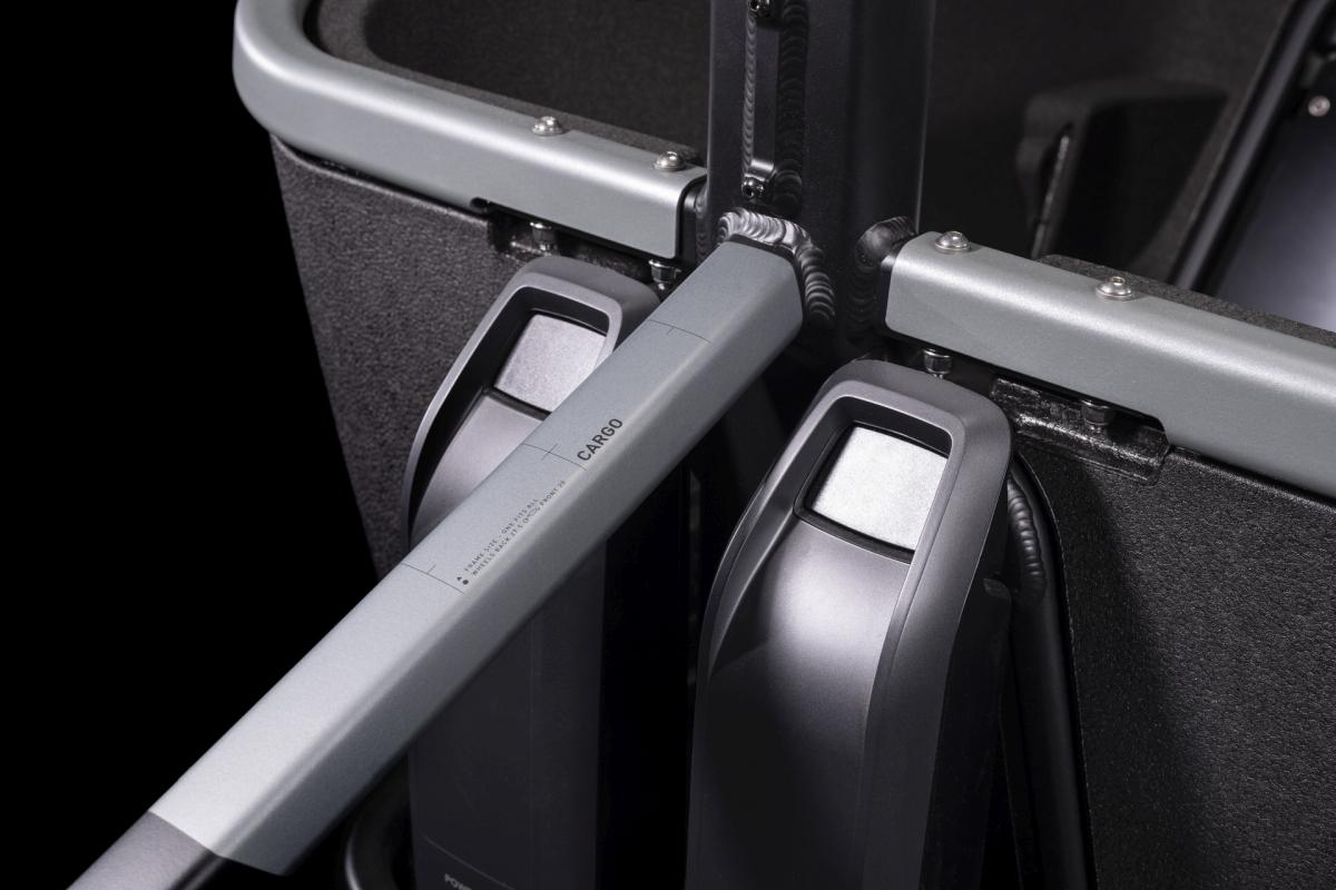 Die meisten Bikes sind so konzipiert, dass sie ihren Fahrer und vielleicht ein bisschen Gepäck von A nach B bringen. Nicht so unser Cargo Sport Hybrid 500, das den Transport von weitaus größeren und schwereren Lasten mit bis 220 kg Systemgewicht schafft. Per optionalem Kindersitz ermöglicht es zudem die sichere und komfortable Beförderung von bis zu zwei Kindern. Zugleich legt das Chassis selbst bei voller Beladung ein stabiles, unkompliziertes Handling an den Tag, was sich vor allem beim teils herausfordernden Navigieren quer durch den Stadtverkehr bezahlt macht. Der kraftvolle Lasten-spezifische Bosch Motor – unauffällig unten am Sattelrohr positioniert – wird von einem 500 Wh starken Akku gespeist, außerdem gibt es Platz für einen weiteren 500 Wh Akku für noch größere Reichweite.