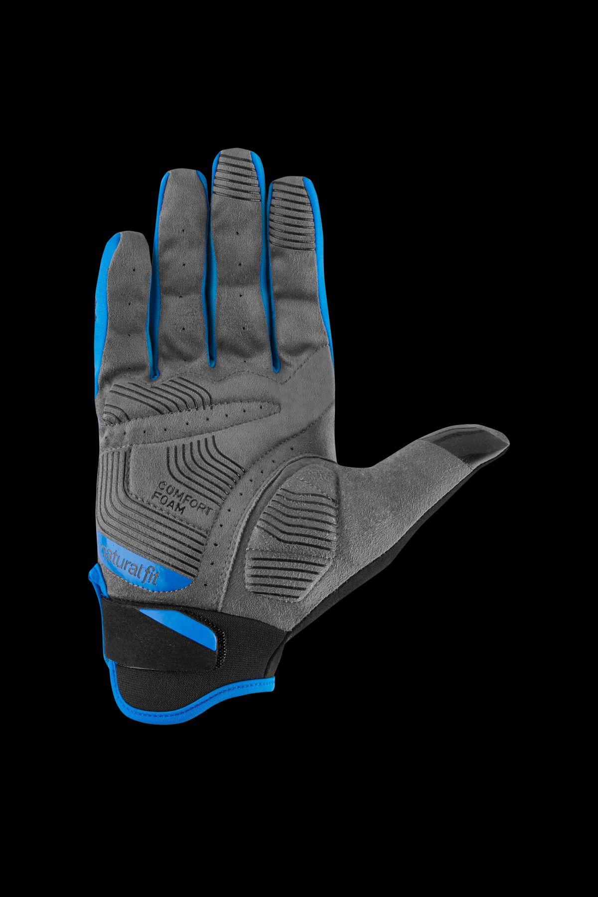 CUBE Natural Fit Polsterung, Grip-Print an Handinnenfläche und Fingerspitzen, Touchscreen Funktion am Zeigefinger, atmungsaktives Obermaterial, belüftete Handinnenfläche, nahtlose Fingerspitzenkonstruktion, verstellbarer Bund, Nano Klettverschluss mit Grip-Print