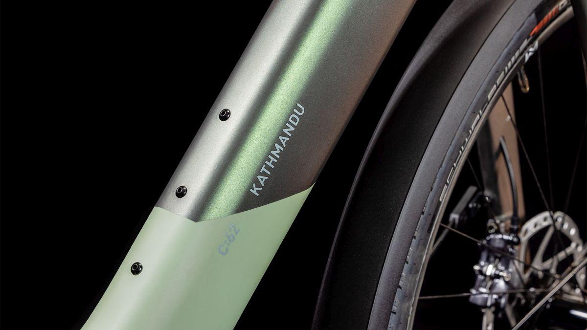 Der Tiefeinsteigerrahmen des Kathmandu Hybrid C:62 SLX 400 ist nicht nur superelegant und supereinfach im Handling, sondern auch extrem raffiniert konstruiert und flexibel anpassbar. Unser bewährtes C:62® Carbon sorgt dabei für die perfekte Mischung aus Stabilität und geringem Gewicht. Außerdem haben wir einen 400 Wh starken Bosch Akku verbaut, der sich ästhetisch ins Rahmendesign einfügt und dort zuverlässig vor Nässe und Schmutz geschützt ist. Die im Inneren verlaufenden Züge und der formschöne integrierte Gepäckträger IC 3.0 als stabile, vielseitige Transportplattform für sämtliches Hab und Gut unterstreichen den cleanen Look. Ein agiles, präzises Lenkverhalten ist das Spezialgebiet der Vollcarbongabel. Und für das stabile Handling, selbst bei voller Beladung, sind die Boost Steckachsen an Front und Heck verantwortlich. Dazu kommt ein beinahe unzerstörbares UDH Schaltauge. Keine Frage, wir haben an alles gedacht, was wichtig ist!