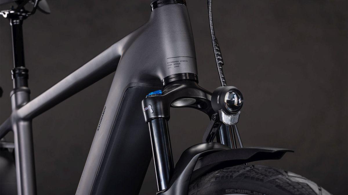 Der Rahmen des CUBE Kathmandu Hybrid sieht auf den ersten Blick vielleicht unspektakulär aus – auf den zweiten erschließen sich jedoch seine Eleganz und Klasse, außerdem die vielen Innovationen und cleveren Details. Dabei ist der samt 800 Wh PowerTube Akku ästhetisch und sauber ins Design integrierte CX Motor von Bosch nur eins der Highlights. Ein weiteres ist unsere Efficient Comfort Geometry, die harmonisch mit der 100 mm Federgabel Hand in Hand arbeitet, was die Kontrolle vor allem bei schwierigen Bedingungen optimiert. Dazu die interne Zugverlegung, die den cleanen Look des Chassis unterstreicht. Was noch? Ein vielseitiges, beinahe unzerstörbares UDH für einfache Ersatzteilverfügbarkeit und unser stabiler, robuster, überaus formschöner integrierter Gepäckträger IC 3.0, auf dem alles Platz findet, was auf Abenteuertour mit muss.