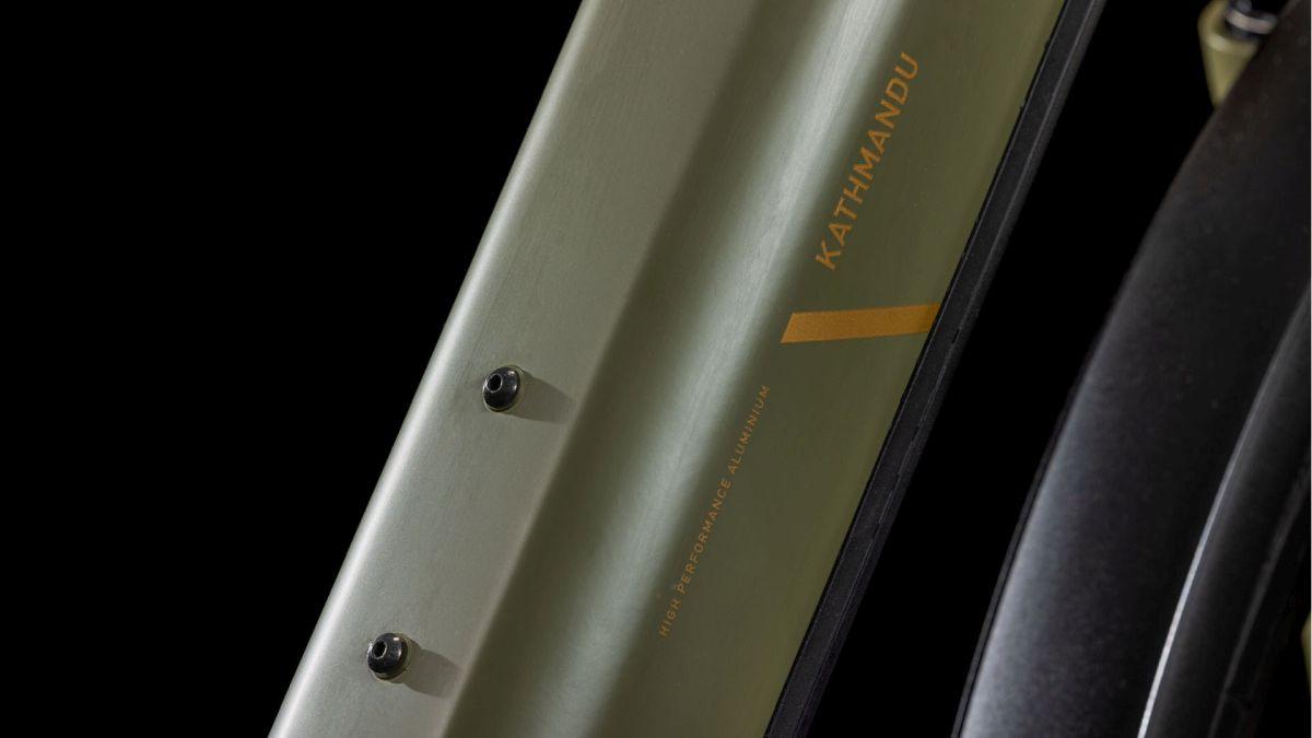 Der Rahmen des CUBE Kathmandu Hybrid sieht auf den ersten Blick vielleicht unspektakulär aus – der zweite enthüllt seine Eleganz, seine Klasse und die vielen Innovationen und cleveren Details. Der samt 800 Wh PowerTube Akku ästhetisch und sauber ins Design integrierte CX Motor von Bosch ist dabei nur der Anfang. Unsere Efficient Comfort Geometry arbeitet harmonisch mit der 100 mm Federgabel Hand in Hand, was die Kontrolle vor allem unter schwierigen Bedingungen optimiert. Dazu die interne Zugverlegung, die der cleanen Optik des Chassis in die Karten spielt und den Wartungsaufwand maßgeblich reduziert. Was noch? Ein vielseitiges, beinahe unzerstörbares UDH für einfache Ersatzteilverfügbarkeit, ein integrierter Kettenschutz und unser stabiler, robuster, überaus formschöner integrierter Gepräckträger IC 3.0, auf dem alles Platz findet, was auf Abenteuertour mit muss.