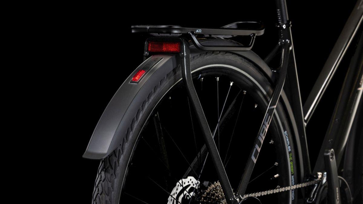 Das Kathmandu Pro hat alles, was wichtig ist, und kommt ohne unnötigen Schnickschnack aus. Seine schlichte Eleganz und hohe Alltagstauglichkeit verdankt es dem integrierten Gepäckträger, dazu haben wir Schutzbleche, Vorder- und Rücklichter und den CUBE FM Seitenständer montiert. Das Bike stellt dank seiner robusten Konstruktion aber auch auf langen Strecken seine Qualität unter Beweis – komfortabel dabei: die Suntour Luftfedergabel, die sämtliche Buckel oder Schlaglöcher auf der Strecke glattbügelt. Die Reifen von Schwalbe bestehen aus recyceltem Kautschuk, was die Umwelt schont. Shimano steuert seine breit gefächerte Cues 2x10-Gang Schaltung bei – so wird jede Route zum Spaziergang. Dazu passende hydraulische Shimano Scheibenbremsen ermöglichen sichere Bremsmanöver, selbst bei Nässe und voller Beladung. Ob Großstadtdschungel oder Outback: Das Kathmandu Pro ist live dabei!