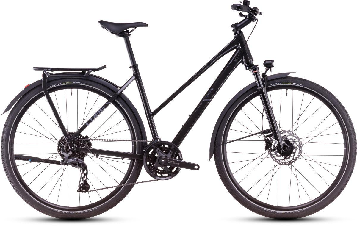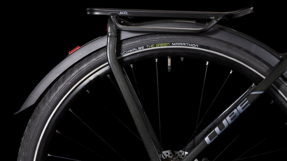 Das Kathmandu Pro hat alles, was wichtig ist, und kommt ohne unnötigen Schnickschnack aus. Seine schlichte Eleganz und hohe Alltagstauglichkeit verdankt es dem integrierten Gepäckträger, dazu haben wir Schutzbleche, Vorder- und Rücklichter und den CUBE FM Seitenständer montiert. Das Bike stellt dank seiner robusten Konstruktion aber auch auf langen Strecken seine Qualität unter Beweis – komfortabel dabei: die Suntour Luftfedergabel, die sämtliche Buckel oder Schlaglöcher auf der Strecke glattbügelt. Die Reifen von Schwalbe bestehen aus recyceltem Kautschuk, was die Umwelt schont. Shimano steuert seine breit gefächerte Cues 2x10-Gang Schaltung bei – so wird jede Route zum Spaziergang. Dazu passende hydraulische Shimano Scheibenbremsen ermöglichen sichere Bremsmanöver, selbst bei Nässe und voller Beladung. Ob Großstadtdschungel oder Outback: Das Kathmandu Pro ist live dabei!