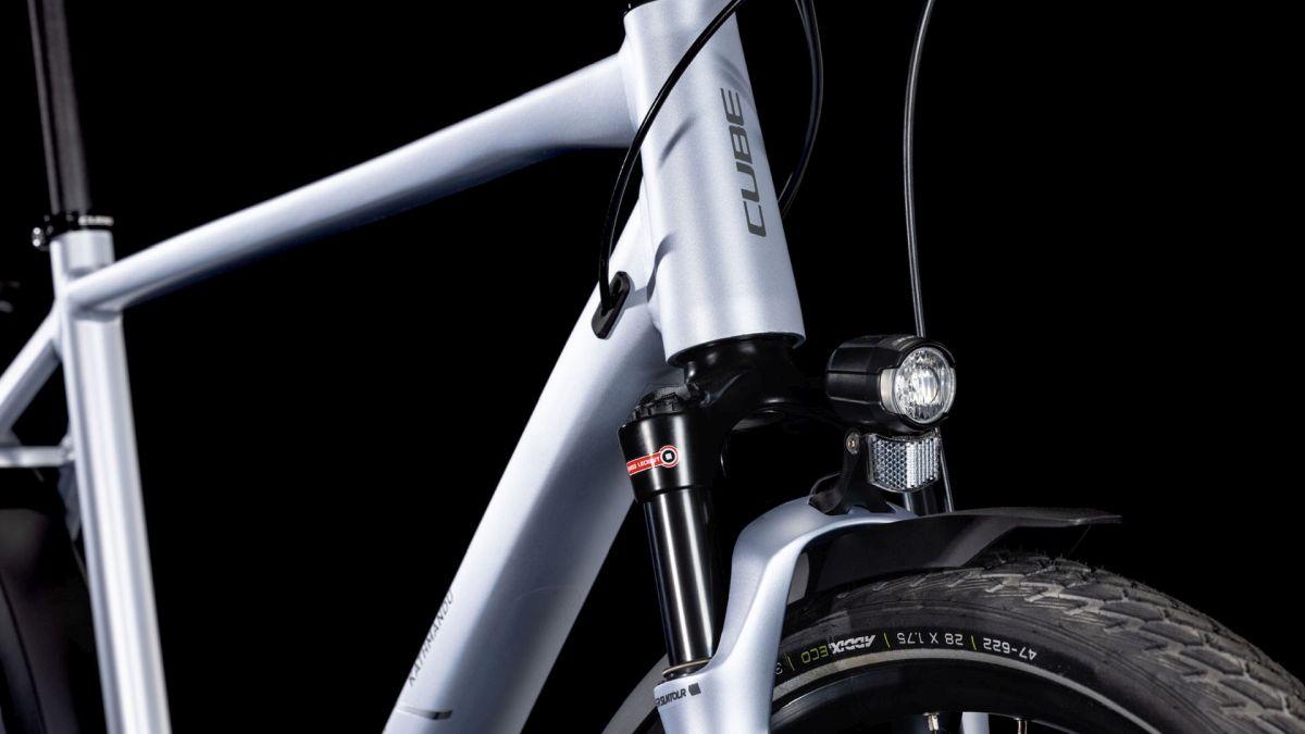 Das Kathmandu Pro hat alles, was wichtig ist, und kommt ohne unnötigen Schnickschnack aus. Seine schlichte Eleganz und hohe Alltagstauglichkeit verdankt es dem integrierten Gepäckträger, dazu haben wir Schutzbleche, Vorder- und Rücklichter und den CUBE FM Seitenständer montiert. Das Bike stellt dank seiner robusten Konstruktion aber auch auf langen Strecken seine Qualität unter Beweis – komfortabel dabei: die Suntour Luftfedergabel, die sämtliche Buckel oder Schlaglöcher auf der Strecke glattbügelt. Die Reifen von Schwalbe bestehen aus recyceltem Kautschuk, was die Umwelt schont. Shimano steuert seine breit gefächerte Cues 2x10-Gang Schaltung bei – so wird jede Route zum Spaziergang. Dazu passende hydraulische Shimano Scheibenbremsen ermöglichen sichere Bremsmanöver, selbst bei Nässe und voller Beladung. Ob Großstadtdschungel oder Outback: Das Kathmandu Pro ist live dabei!