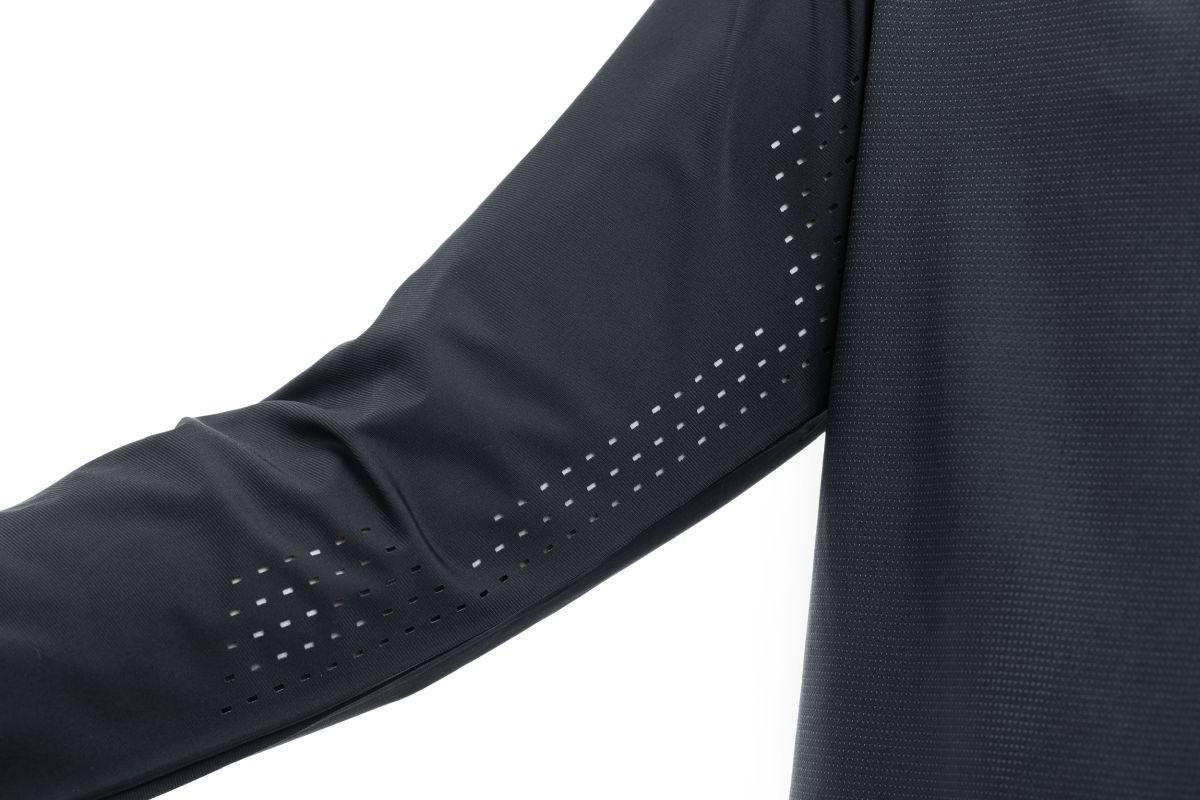 leichte, sehr atmungsaktive, schnell trocknende, abriebfeste Materialien, Liftkartentasche (links), Laserperforation an den Armen für zusätzliche Belüftung, Mikrofasertuch zur Brillenreinigung, Neck-Brace kompatibel, länger geschnittener Rücken, Aufhänger zum Trocknen, Model ist 182cm groß, Model trägt Größe M