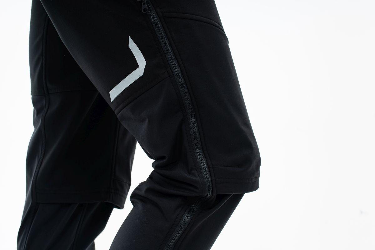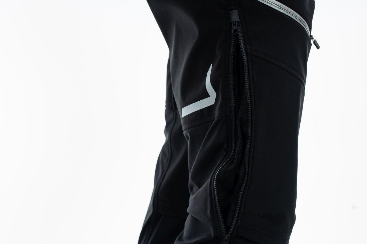 wärmendes und widerstandsfähiges Funktionsmaterial, Fronttaschen mit Reißverschlüssen, reflektierende Elemente, verstellbare Bundweite, Model ist 184 cm groß, Model trägt Größe M