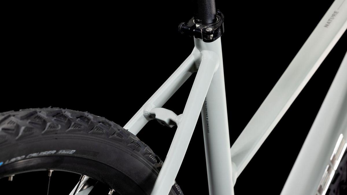 Radfahren soll vor allem eines: Spaß machen. Also haben wir sämtliche Register gezogen, um den Rahmen des Nature so leicht wie möglich zu gestalten, ohne dass die Stabilität verloren geht. Gelungen ist uns das durch doppelt konifizierte Aluminiumrohre und im Smooth Welding Verfahren gestaltete Rohrverbindungen, die für ein cleanes, elegantes Finish sorgen. Weil das Chassis unsere strengen Tests mit Bravour bestanden hat, sind höchste Sicherheit und Robustheit garantiert. Außerdem lässt es genügend Platz für bis zu 50 mm breite Reifen für noch höheren Fahrkomfort und hat ein konisches Steuerrohr für 1a-Lenkpräzision. Kaum sichtbare Verschraubungspunkte für Gepäckträger und Schutzbleche erlauben zudem die einfache Umrüstung. Also alles da, was es für genussvolle Bike-Touren durch die Natur braucht!