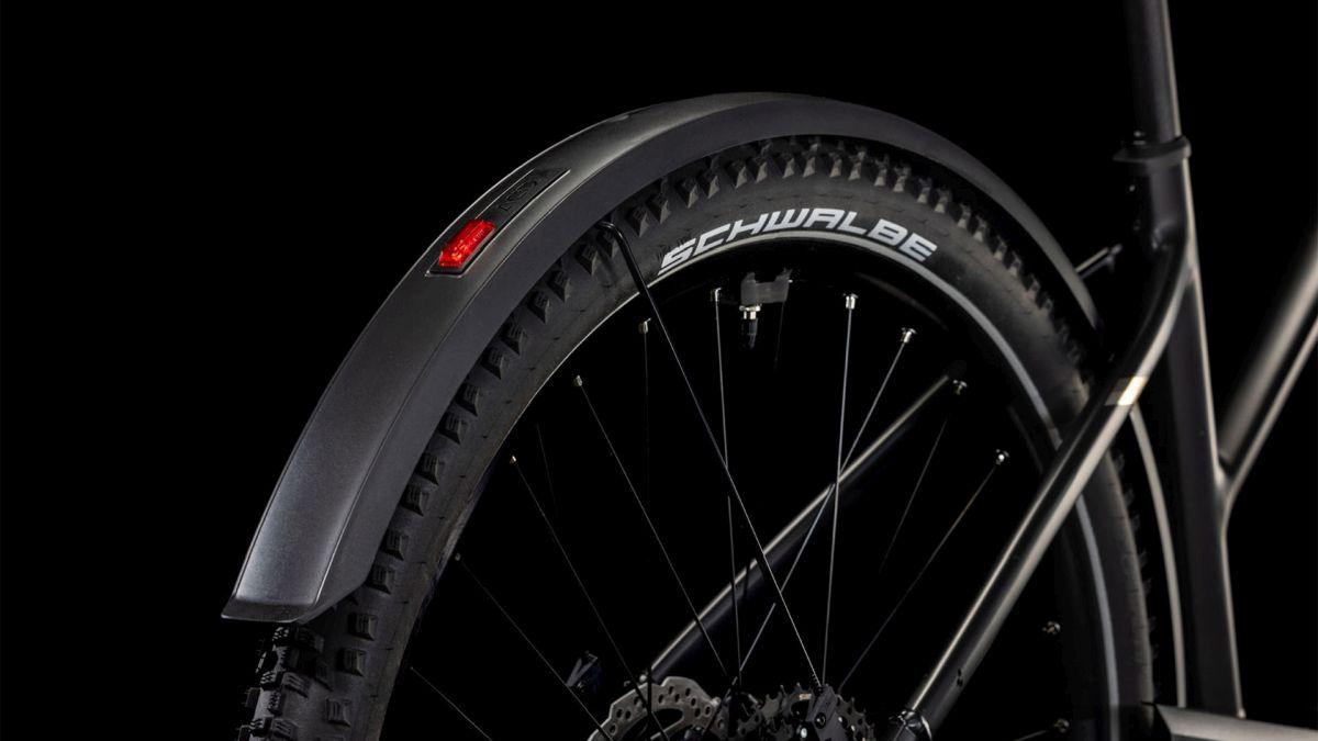 Auf den ersten Blick sieht der Nuride Hybrid Trapezrahmen vielleicht unspektakulär aus, doch wer genau schaut, wird von seiner subtilen Eleganz und seinen innovativen Details begeistert sein. Neben einer Federgabel mit 100 mm Federweg für ein Plus an Fahrkomfort und Kontrolle haben wir das Chassis mit großzügiger Reifenfreiheit (sogar inklusive der mitgelieferten Schutzbleche) ausgestattet. Im Inneren verlaufende Züge unterstreichen die cleane Optik des Rahmens und verursachen kaum Wartungsaufwand. Ebenso harmonisch ins Design integriert sind der Bosch CX Antrieb und der 600 Wh PowerTube Akku. Außerdem gibt's einen Kettenschutz sowie ein UDH für einfachere Ersatzteilverfügbarkeit. Was noch? Serienmäßig verbaute Schutzbleche, Lichter und ein Seitenständer. Da kann das nächste Touren-Abenteuer kommen!