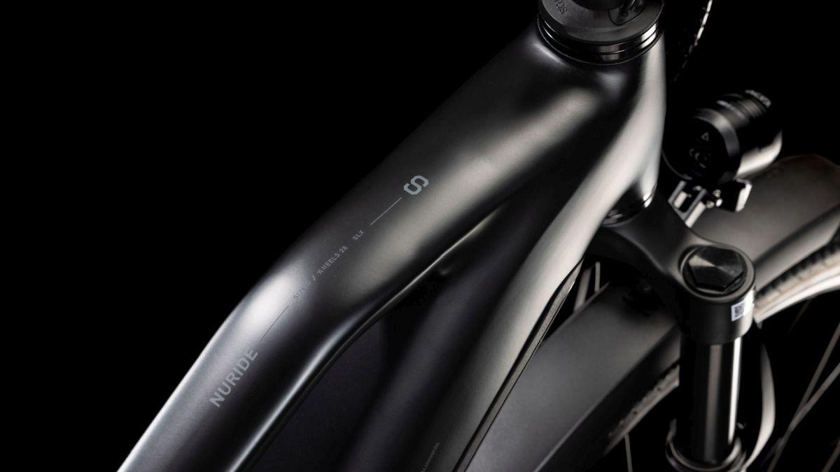 Auf den ersten Blick sieht der Nuride Hybrid Trapezrahmen vielleicht unspektakulär aus, doch wer genau schaut, wird von seiner subtilen Eleganz und seinen innovativen Details begeistert sein. Neben einer Federgabel mit 100 mm Federweg für ein Plus an Fahrkomfort und Kontrolle haben wir das Chassis mit großzügiger Reifenfreiheit (sogar inklusive der mitgelieferten Schutzbleche) ausgestattet. Im Inneren verlaufende Züge unterstreichen die cleane Optik des Rahmens und verursachen kaum Wartungsaufwand. Ebenso harmonisch ins Design integriert sind der Bosch CX Antrieb und der 800 Wh starke PowerTube Akku. Außerdem gibt's einen Kettenschutz sowie ein UDH für einfachere Ersatzteilverfügbarkeit. Was noch? Serienmäßig verbaute Schutzbleche, Lichter und ein Seitenständer. Da kann das nächste Touren-Abenteuer kommen!