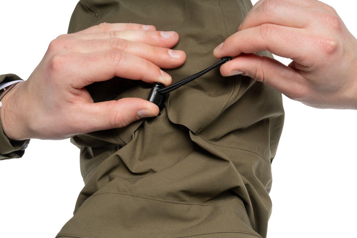 Regular fit, wasserdichtes, atmungsaktives Material mit TPU Membran und 10.000mm (JIS-L-1092 B:2009) Wassersäule, Nähte vollständig versiegelt, Helmkompatible Kapuze, Seitentaschen mit Reißverschluss, 2-Wege Reißverschluss vorne: Weitenregulierbarer Saum, Klettverstellung am Ärmelsaum, Model ist 185cm groß und trägt Größe M