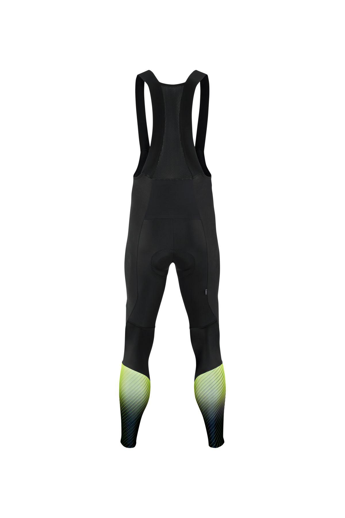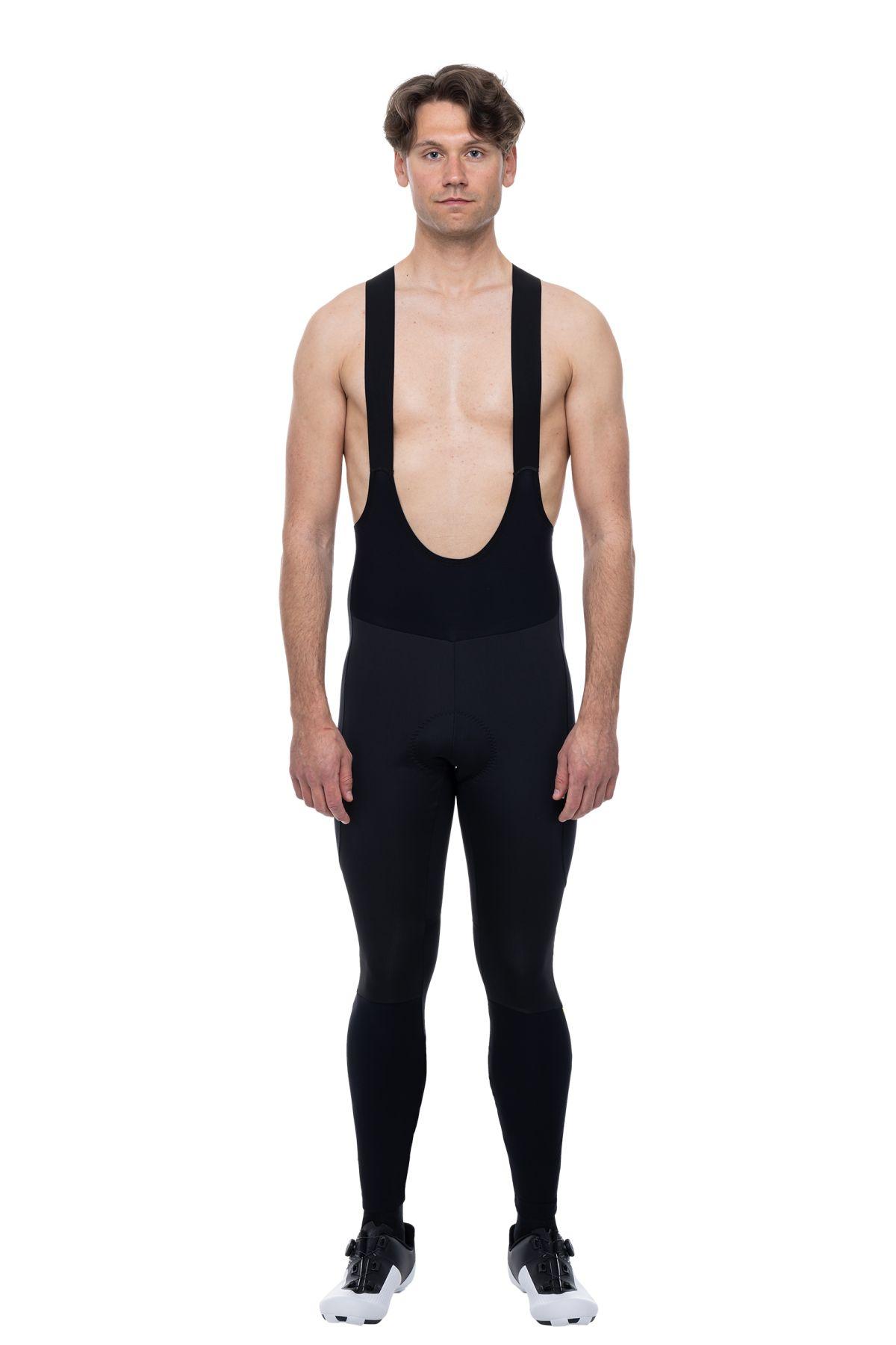 wärmendes und schnelltrocknendes Funktionsmaterial, reflektierende Elemente, anschmiegsame Schulterträger, atmungsaktiver Mesh-Einsatz im Rückenbereich, CUBE Team Pad - hergestellt in Italien, Primetronic Material, Model ist 190 cm groß, Model trägt Größe L