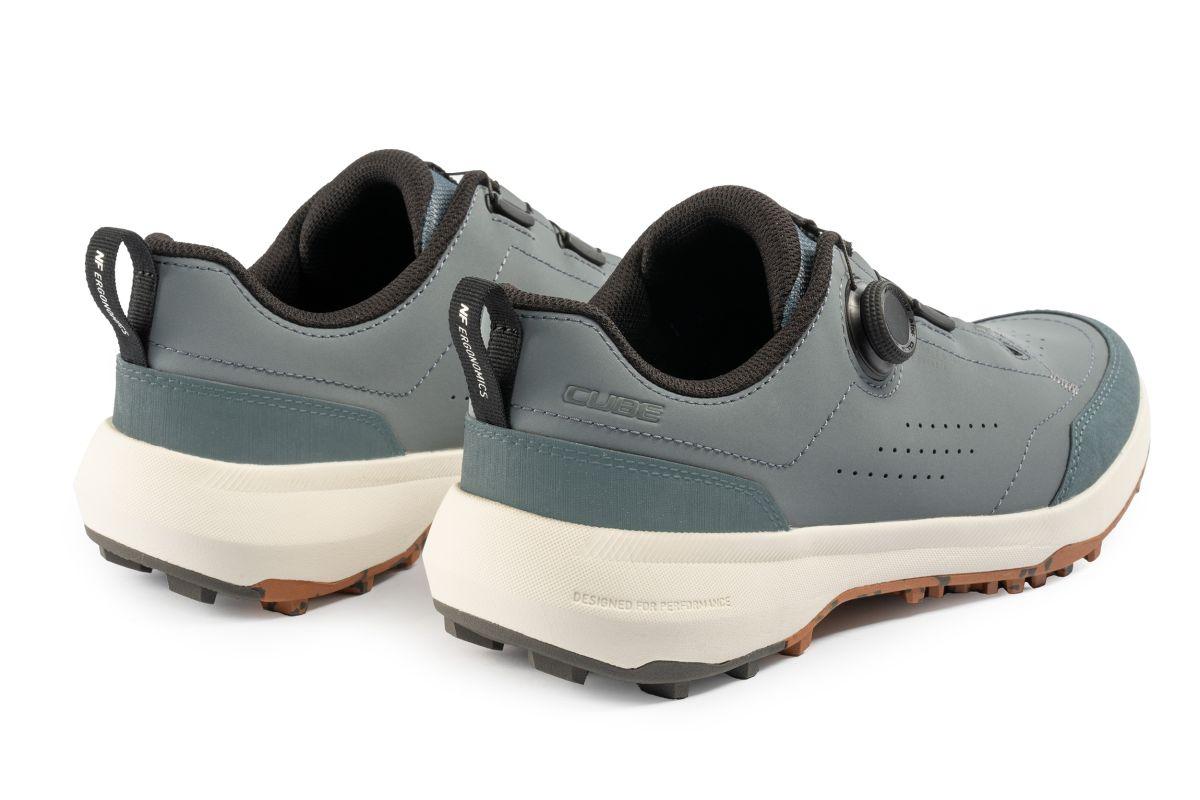 Der CUBE LOXIA PRO Schuh vereint die Griffigkeit und Flexibilität eines Outdoor-Laufschuhs mit der notwendigen Unterstützung für effizientes und komfortables Pedalieren, was die Ermüdung reduziert. Er ist ideal für viele Arten des Radfahrens, einschließlich Touren, Gravel, Enduro-Mountainbiking und alle Arten von E-Biking geeignet. Eine interne Nylon-Verstärkung sorgt für die nötige Steifigkeit beim Pedalieren, während eine stoßdämpfende EVA-Mittelsohle und die neu entwickelte, griffige A-TRACTION Gummimischung exzellente Traktion für Flatpedals sowie guten Komfort und Flexibilität für Laufpassagen abseits des Fahrrads bieten. Eine verstärkte Zehenbox schützt den Fuß, und eine NF Ergonomics-Innensohle bietet optimale Polsterung und Druckverteilung. Der Disc-Verschluss ermöglicht zudem ein schnelles und einfaches An- und Ausziehen.