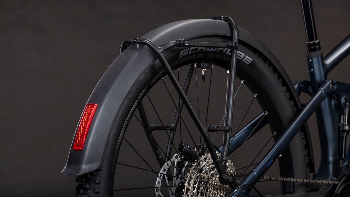 Ein Bike für absolut alles – geht das? Wenn es unser Stereo Hybrid ONE22 SLX 800 FE ist, schon. Schutzbleche, Gepäckträger, Lichter und Seitenständer machen es zum perfekten Allrounder für sämtliche Zweiradabenteuer, ob Wochenendradtour ins Outback oder täglicher Weg ins Office. Die 34 Float AWL Federgabel und der Float Rhythm RC Dämpfer von Fox bügeln sämtliche Schläge auf ruppigen Trails effizient glatt. Die griffigen 2.6 Zoll Schwalbe Reifen sorgen im Team mit leistungsstarken hydraulischen Shimano XT 4-Kolben Scheibenbremsen für ein Plus an Sicherheit und Kontrolle. Ebenfalls aus dem Hause Shimano kommt die 12-fach XT Schaltung, die den Vortrieb des Bosch CX Motors mit Purion 200 Display und 800 Wh Akku wohldosiert auf den Boden bringt. So geht's effizient – und stets entspannt – dem Ziel entgegen!