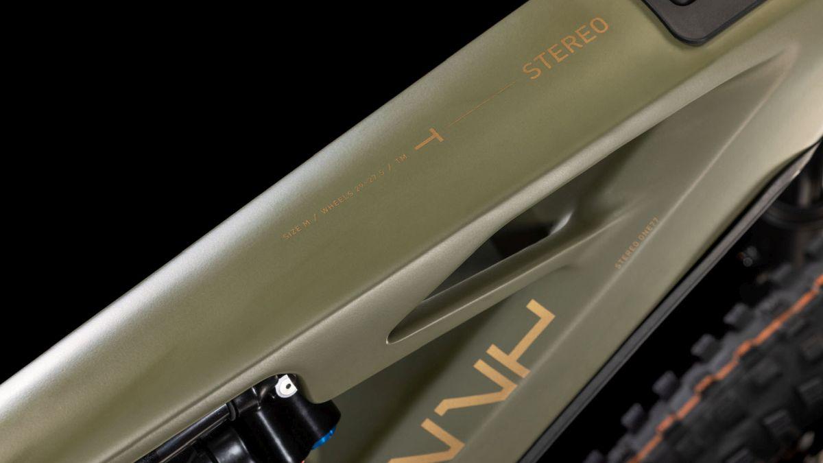Der Rahmen des Stereo Hybrid ONE77 HPC ist wahrlich eine Klasse für sich, denn hier treffen 170 mm Federweg an der Front und am Heck auf ein Mullet-Set-up mit einem 29 Zoll Vorderrad und 27.5 Zoll Hinterrad. Damit werden Big-Mountain-Trail-Träume wahr! Wie immer bei CUBE maximal detailverliebt konstruiert auch der Rest: Integrated Cable Routing sorgt für einen supercleanen Look und reduziert den Wartungsaufwand auf ein Minimum. Dazu kommt ein Steuersatz zur Winkelverstellung, mit dem sich das Handling an individuelle Vorlieben und Anforderungen anpassen lässt. Außerdem haben wir den 800 Wh starken PowerTube Akku gleich über dem Bosch CX Motor sauber und formschön ins Carbon-Unterrohr integriert. Für einfachere Ersatzteilverfügbarkeit gibt's ein UDH am Aluminium-Hinterbau – und weil wir auch eine Direct Mount Kettenführung verbaut haben, geht's mit diesem Fully selbst bei schwierigen Bedingungen weiter, weiter und immer weiter.