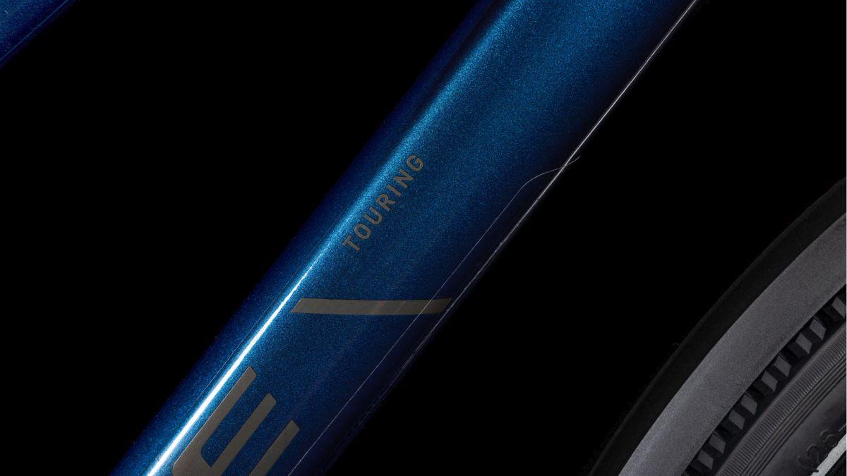 Das Herzstück des Touring ist sein hochwertiger, leichter, doppelt konifizierter Aluminium-Trapezrahmen, der dank Efficient Comfort Geometry selbst die längsten Ausfahrten zum dauerhaften Genuss macht. Ein weiteres Highlight dieses schlichten, aber überaus eleganten Chassis: seine Stabilität und das agile, intuitive und zugleich sichere Handling. Die Züge haben wir für konstant präzise Gangwechsel und wenig Wartungaufwand sauber ins Unterrohr verlegt – dadurch geht's sorgenfrei und geschmeidig vorwärts. Dazu kommen ein stylisher semi-integrierter Gepäckträger, auf dem alles Platz findet, was auf Tour mit muss, und ein Flat Mount Seitenständer zum unkomplizierten Parken und Abstellen.