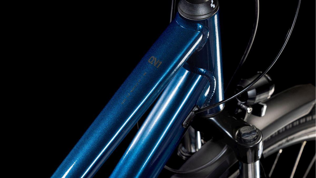 Das Herzstück des Touring ist sein hochwertiger, leichter, doppelt konifizierter Aluminium-Trapezrahmen, der dank Efficient Comfort Geometry selbst die längsten Ausfahrten zum dauerhaften Genuss macht. Ein weiteres Highlight dieses schlichten, aber überaus eleganten Chassis: seine Stabilität und das agile, intuitive und zugleich sichere Handling. Die Züge haben wir für konstant präzise Gangwechsel und wenig Wartungaufwand sauber ins Unterrohr verlegt – dadurch geht's sorgenfrei und geschmeidig vorwärts. Dazu kommen ein stylisher semi-integrierter Gepäckträger, auf dem alles Platz findet, was auf Tour mit muss, und ein Flat Mount Seitenständer zum unkomplizierten Parken und Abstellen.