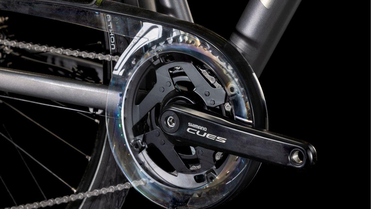 Kurbelgarnitur: Shimano Cues FC-U4010, Hollowtech ll, 46x30T, Chainguard