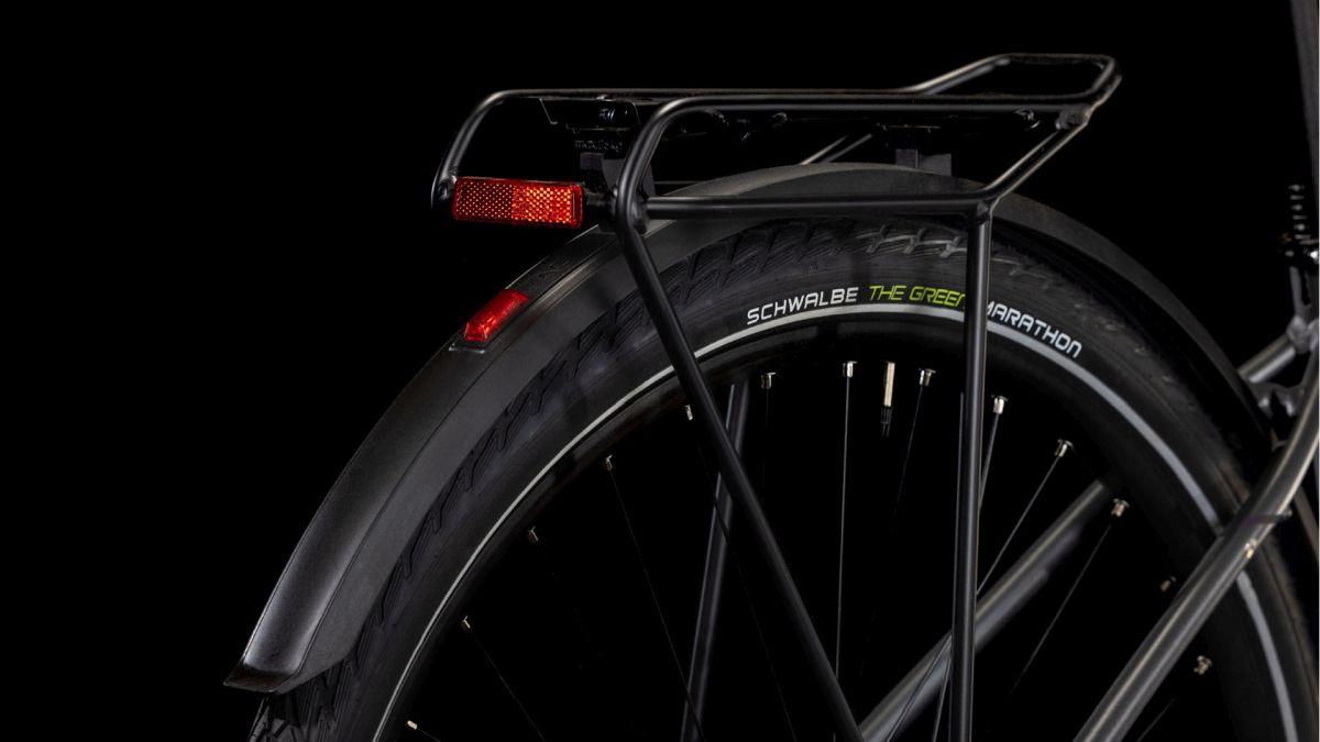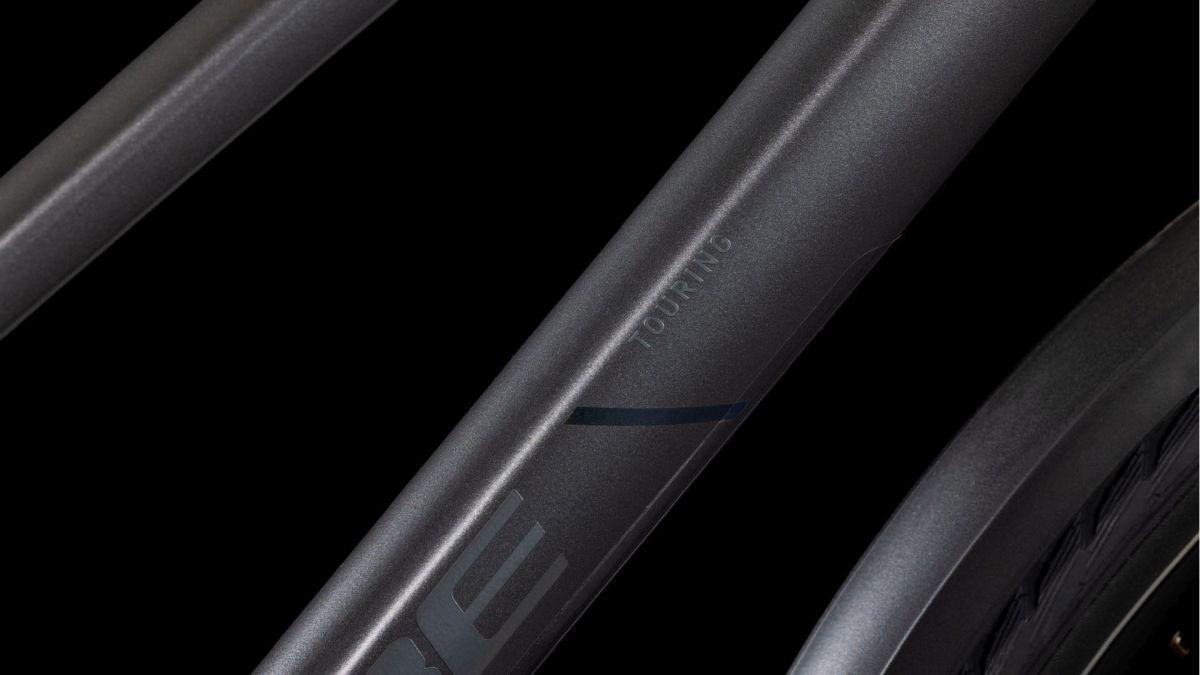 Das Herzstück des Touring ist sein hochwertiger, leichter, doppelt konifizierter Aluminium-Trapezrahmen, der dank Efficient Comfort Geometry selbst die längsten Ausfahrten zum dauerhaften Genuss macht. Ein weiteres Highlight dieses schlichten, aber überaus eleganten Chassis: seine Stabilität und das agile, intuitive und zugleich sichere Handling. Die Züge haben wir für konstant präzise Gangwechsel und wenig Wartungaufwand sauber ins Unterrohr verlegt – dadurch geht's sorgenfrei und geschmeidig vorwärts. Dazu kommen ein stylisher semi-integrierter Gepäckträger, auf dem alles Platz findet, was auf Tour mit muss, und ein Flat Mount Seitenständer zum unkomplizierten Parken und Abstellen.