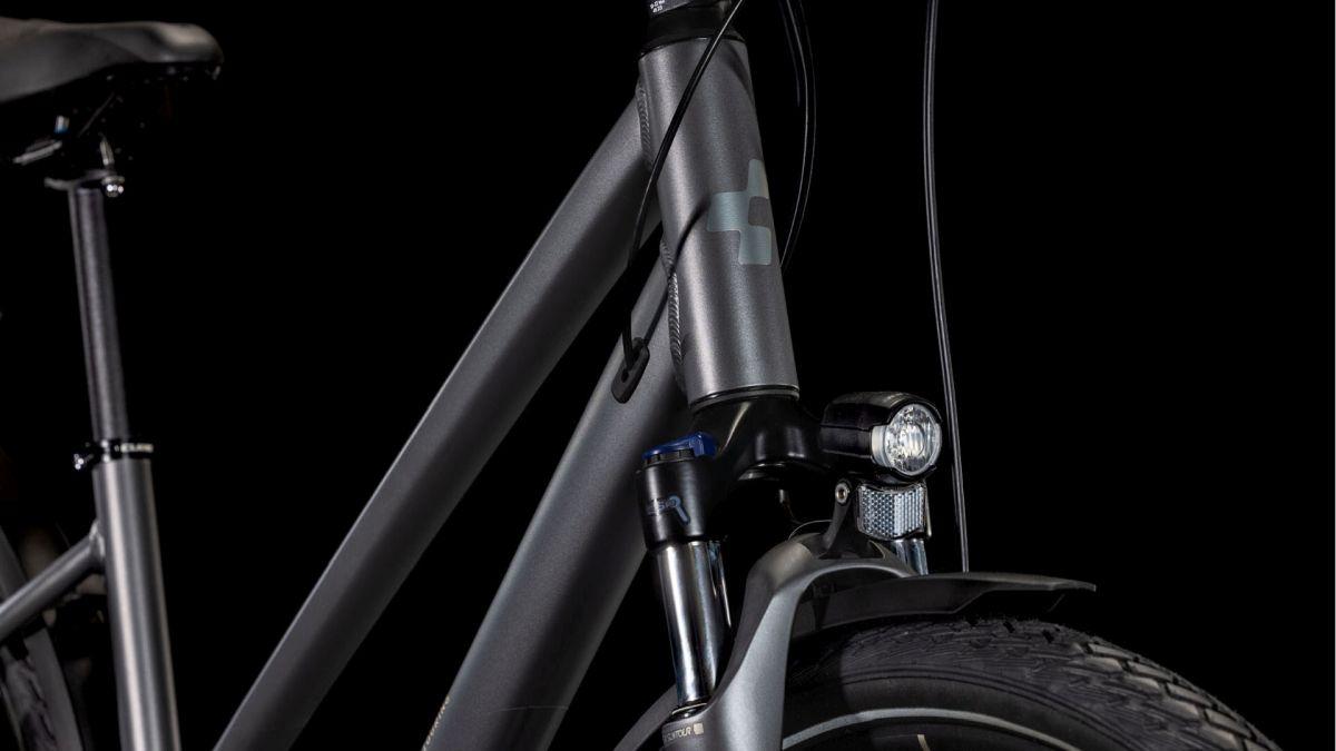 Das Herzstück des Touring ist sein hochwertiger, leichter, doppelt konifizierter Aluminium-Trapezrahmen, der dank Efficient Comfort Geometry selbst die längsten Ausfahrten zum dauerhaften Genuss macht. Ein weiteres Highlight dieses schlichten, aber überaus eleganten Chassis: seine Stabilität und das agile, intuitive und zugleich sichere Handling. Die Züge haben wir für konstant präzise Gangwechsel und wenig Wartungaufwand sauber ins Unterrohr verlegt – dadurch geht's sorgenfrei und geschmeidig vorwärts. Dazu kommen ein stylisher semi-integrierter Gepäckträger, auf dem alles Platz findet, was auf Tour mit muss, und ein Flat Mount Seitenständer zum unkomplizierten Parken und Abstellen.
