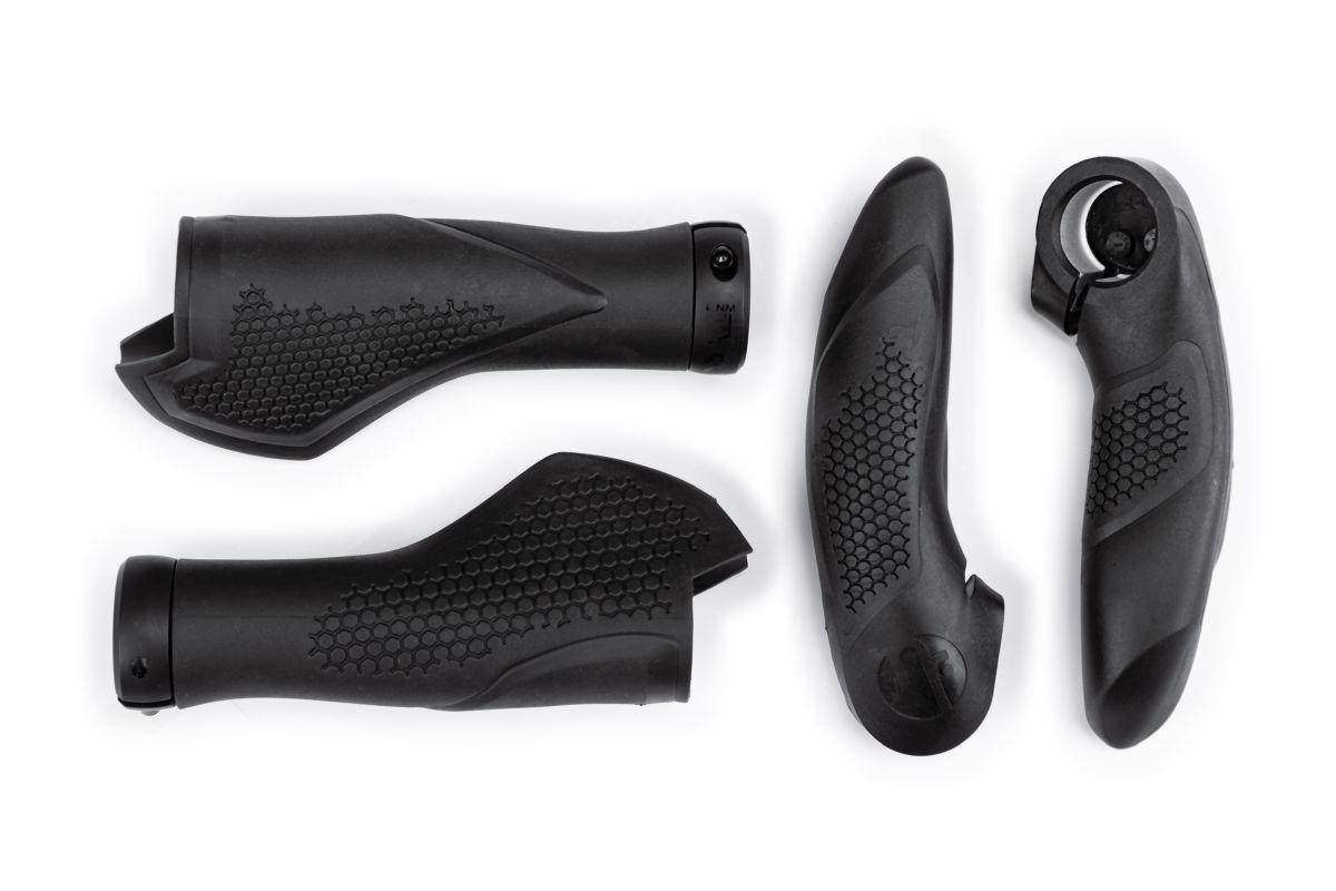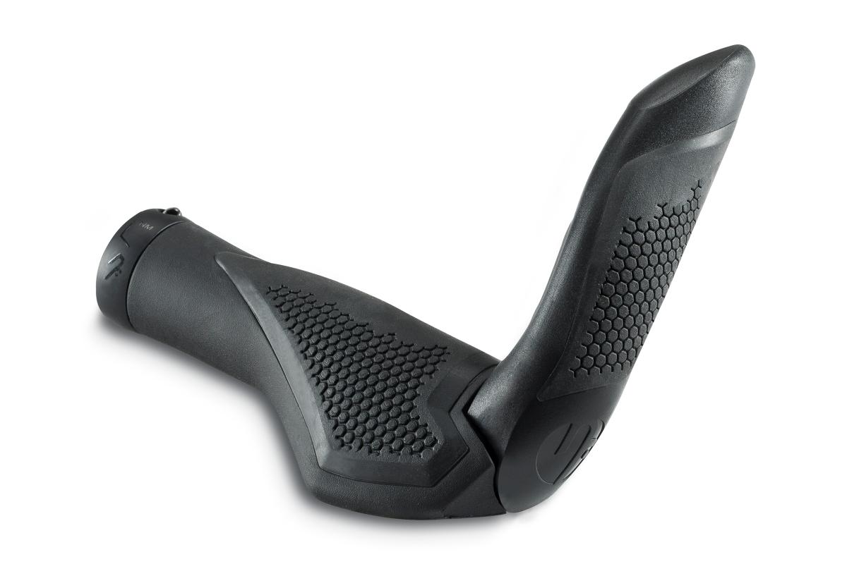 Natural Fit Philosophie angewandt auf ein entspannendes Fahrerlebnis, Triple-Density Material, Auflage mit Shock X Material absorbiert hochfrequente Vibrationen, Innenklemmung, in zwei Größen erhältlich, hochwertige Cold Forged Aluminiumklemme, ergonomisch optimierte Dual-Density Barend large, integrierte Klemmung