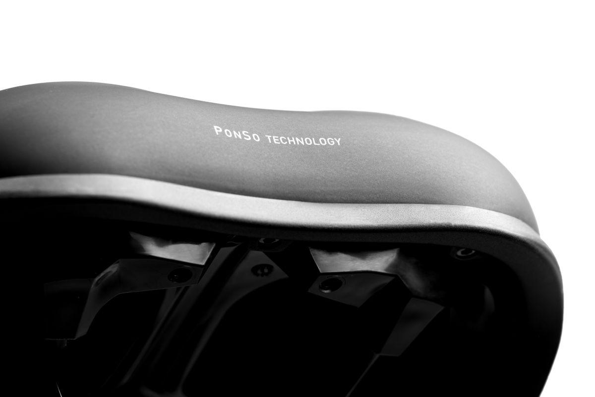 Sitz Dich Fit mit PONSO! Das kommt nicht von ungefähr, denn die innovative Sattelbauweise der PONSO Technologie wirkt extrem druckentlastend und wurde für eine aufrechte Sitzposition optimiert. Die Dual-Schaum-Polsterung besteht aus dem weichen PONSO-FOAM SOFT und PU-Schaum. Sie sorgt für ein entspanntes langes Fahren. Y-Shade bezeichnet die obere Schaumschicht, sie ist Y-förmig und sorgt für Freiheit am Steiß und Druck-Entlastung entlang der empfindlichen Genitalien und Nerven. Da diese Schicht aus dem PONSO-FOAM SOFT besteht, werden die Bewegungen der Sitzknochen beim Pedalieren mitgemacht, obwohl der Schaum vom Fahrergewicht bereits gestaucht ist. Dadurch entsteht weniger Reibung um die Sitzknochen und Muskeln. Der untere PU-Schaum hält das Becken und verteilt den Druck um die Muskulatur. Unterhalb der Sitzknochen befinden sich Aussparungen in der Sattelschale, die Hammock-Cuts. Die Sitzknochen liegen damit wie in einer Hängematte. Damit gibt es eine Druckumverteilung von den Sitzknochen zu der lastragenden und unempfindlicheren Muskulatur. Die Shock-Absorber Gestellaufnahme verringert Fahrbahnschläge vom Untergrund. Das hochwertige Obermaterial sorgt für eine angenehme Haptik und Langlebigkeit.