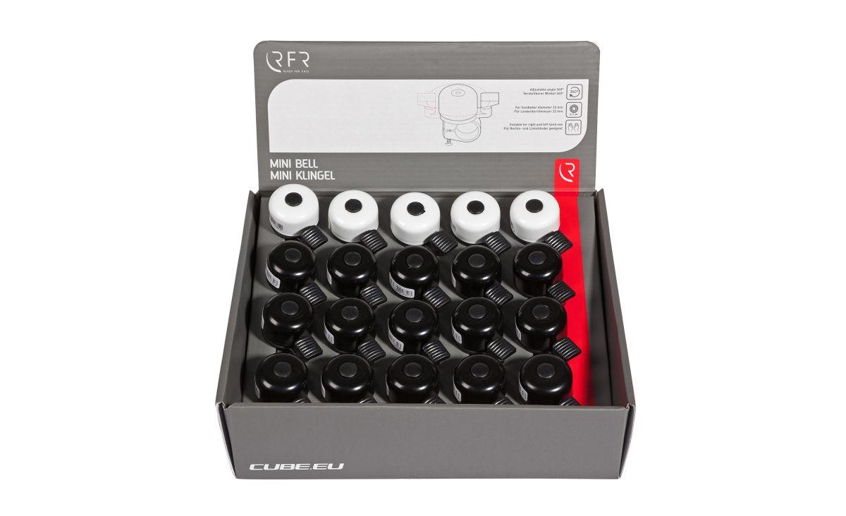 Die Klingelbox Mini beinhalt 20 x RFR Mini-Klingeln, die durch schlichtes und zeitloses Design positiv auffallen. Der Schraubverschluss kann auf den Lenkerdurchmessern von 22 - 24 mm angebracht werden und ist sowohl für Rechts- als auch für Linkshänder geeignet.