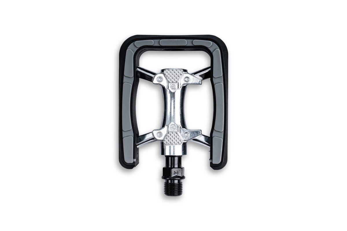 Komfort-Pedal mit rutschfester Auflage aus Kraton, CrMo-Achse für lange Lebensdauer, integrierte Reflektoren