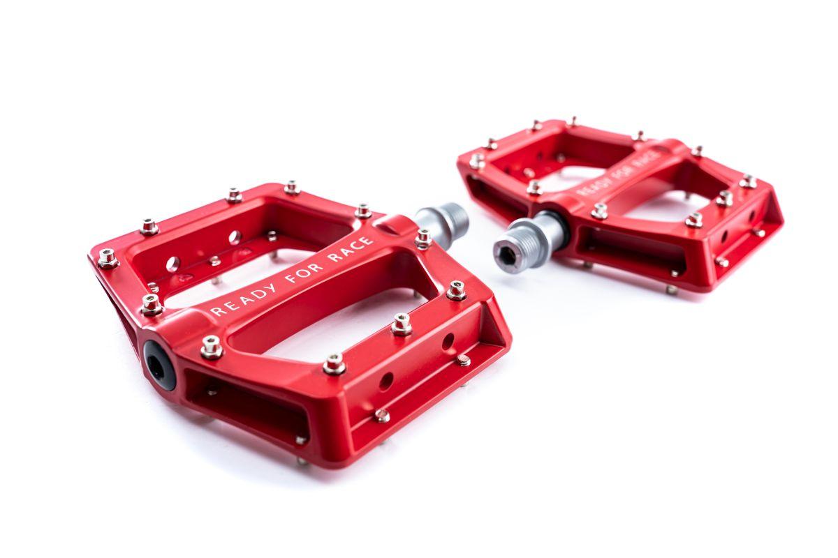 Die leichten Flat-Pedale sind aus Aluminium hergestellt und werden mit einer CrMo-Achse verbaut. Die Pedale werden mit hochwertigen Lagern gelagert. Die Anti-Rutsch-Pins sind austauschbar und bieten besten Halt am Fahrrad.