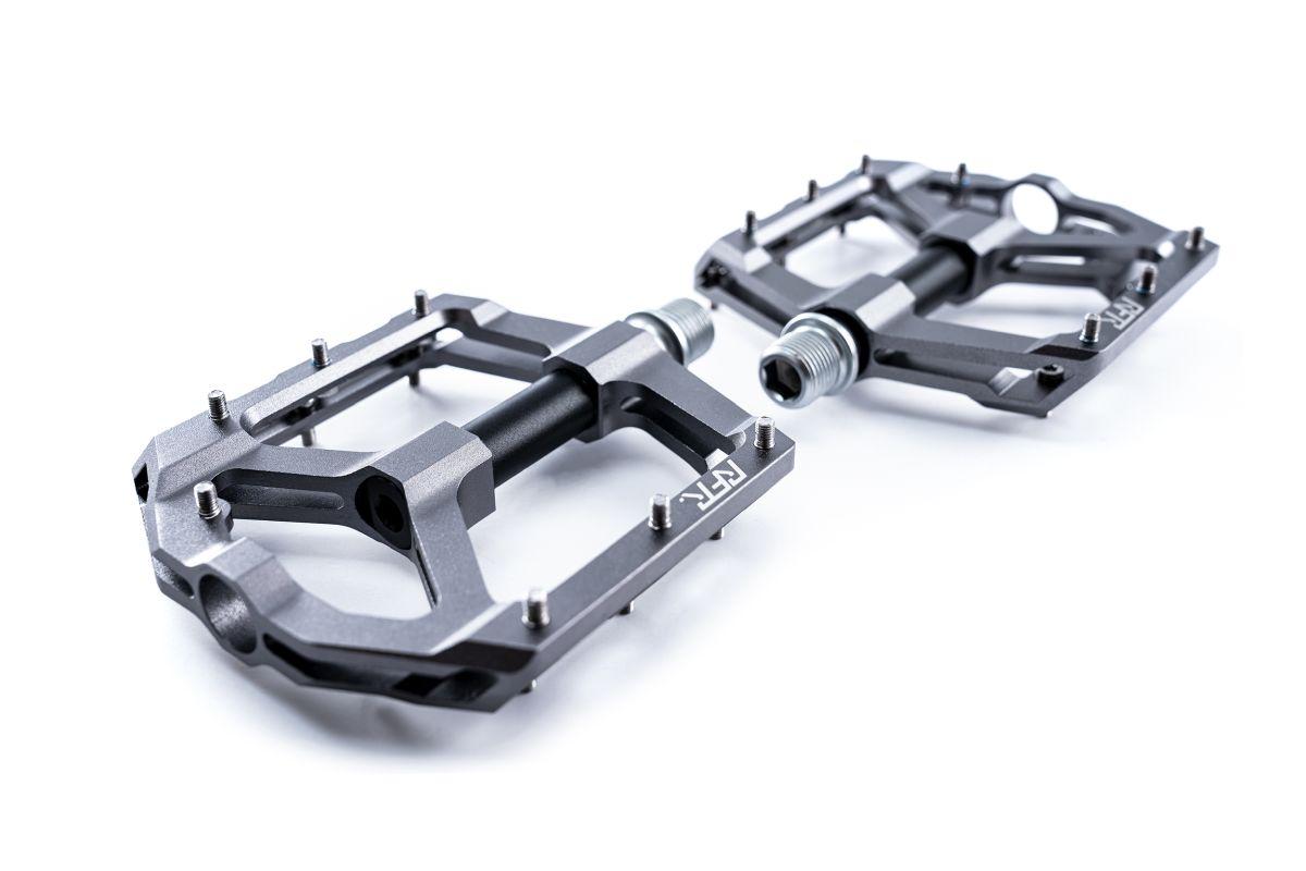 hochwertig CNC gefrästes Flat Pedal, aggressiv flaches Design, austauschbare Pins, große, griffige Standfläche, dreifach gedichtetes Industrielager mit LSL bushing, CrMo-Achse